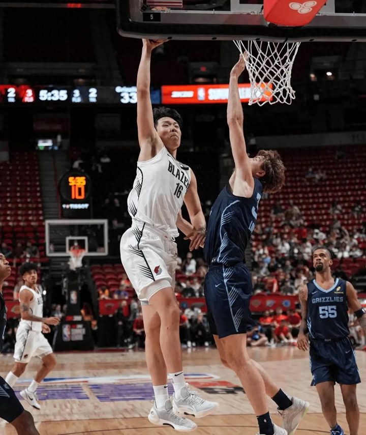 NBA夏季联赛继续进行,今天开拓者队背靠背迎来了灰熊队的挑战,杨瀚森则再次披挂上场,全场比赛再次砍下10分5篮板3助攻的数据。其中上演了两次的扣篮,一次是在接到队友传球下顺之后隔着人完成战斧劈扣。而另一记扣篮则是在队友投篮不进之后在内线完成补扣。今天这场比赛充分展现出了杨瀚森在篮下进攻的侵略性以及坚决性。